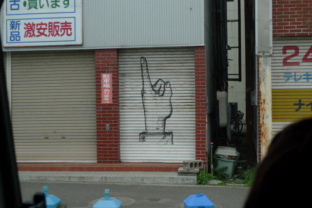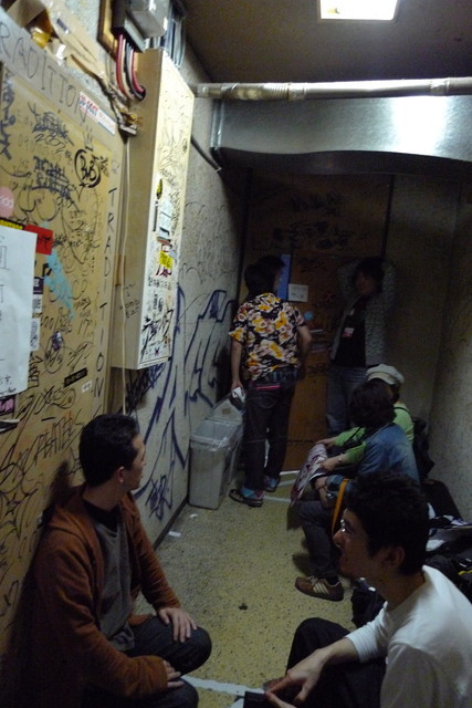 やっと本番日謎のマーク。友民党支部か!?っとようやくライブ会場です。リハ中は手製おにぎりで快腸のはずが緊張で出るものが出ない・・・