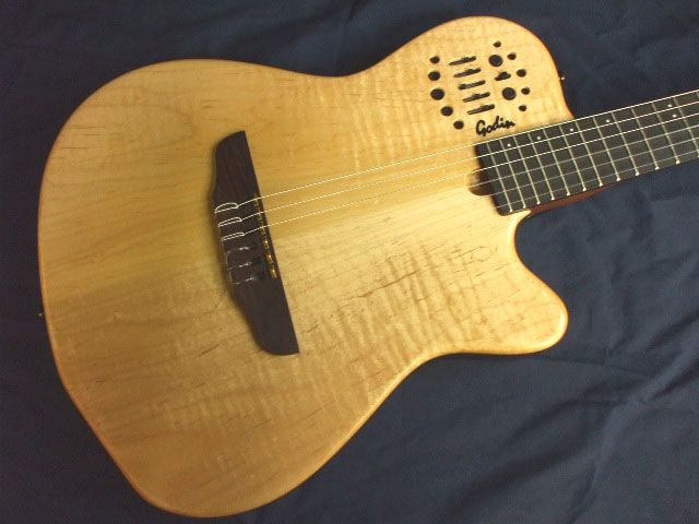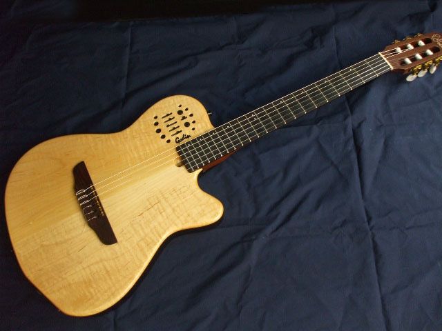 GODIN(ゴダンといメーカー)で普通のエレキギターと違ってナイロン弦タイプ。クラシックギターがアンプにつなげるよ!ってタイプ。